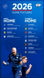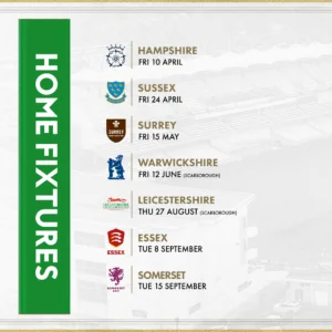 Late-season trips to Hampshire and Surrey will precede the visits of Essex and Somerset in the Rothesay County Championship before the season finishes at Nottinghamshire, who completed a barnstorming County Championship triumph in 2025.