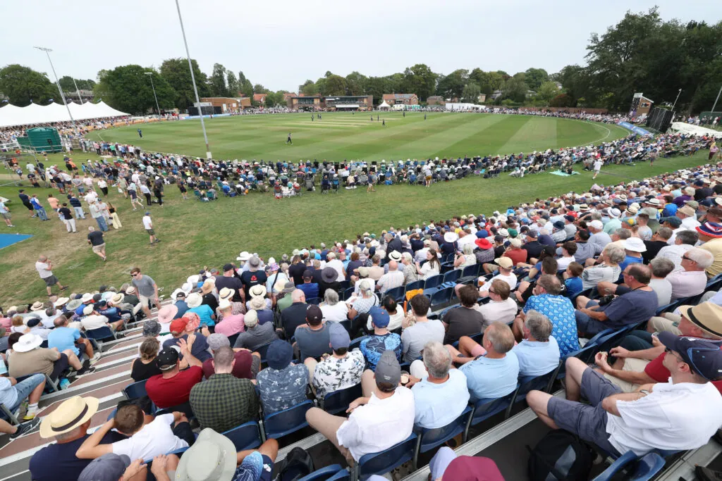 The scene at Clifton Park, York today, where Yorkshire versus Lancashire is being watched by a sellout 4,500 crowd.