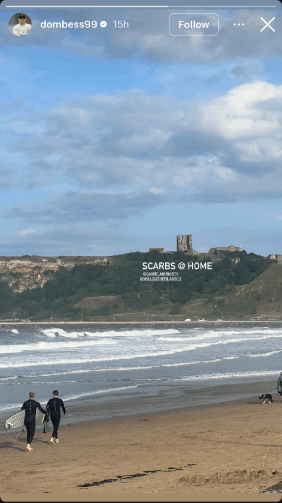 Will Sutherland is playing his last game for Yorkshire this week before going home to Australia. But he was desperate for an early taste of home so went surfing with Dan Moriarty after play last night. Dom Bess was on hand to capture the moment on his Instagram story.