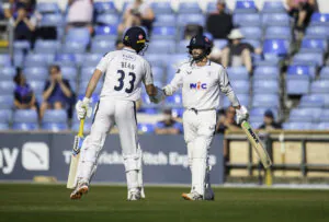 He united with second-wicket partner Sam Whiteman either side of tea, the fellow left-hander also contributing an unbeaten 73 as they shared 175 for the second wicket – a partnership they will look to extend tomorrow and eat into a visiting lead which stands at 310.