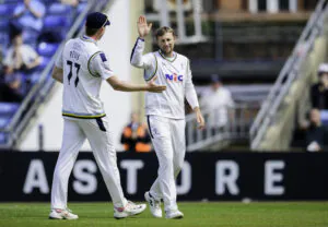 The left-hander was later caught at long-on off Joe Root’s off-spin after Jack Carson had been trapped lbw by Logan van Beek. That was Root’s 100th first-class career wicket.