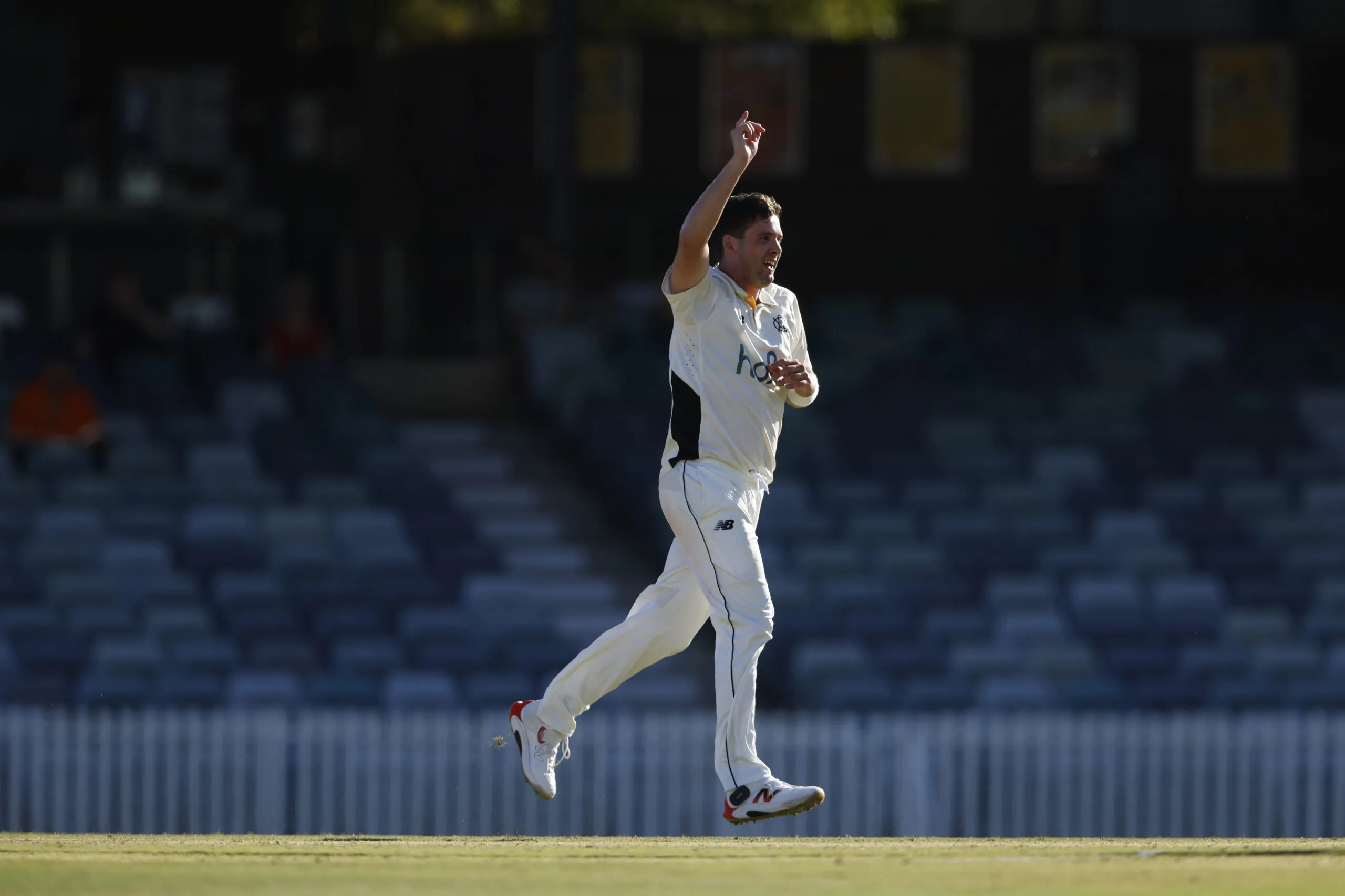 Jhye Richardson celebrates his wicket during day two of the Sheffield Shield match between Western Australia and Tasmania at WACA. (Photo by James Worsfold/Getty Images)